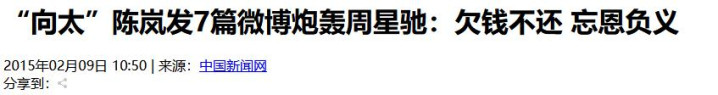 中国新闻网| “向太”陈岚发7篇微博炮轰周星驰:欠钱不还 过河拆桥