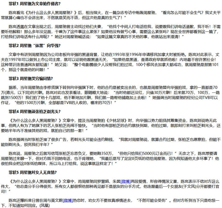 就地,向太在同庚9月公开对周星驰淡薄了五项指控。