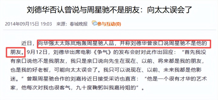 他称他仅仅说向华强是他以往、现时、改日的一又友以及好雇主,但莫得说周星驰不是他一又友。
