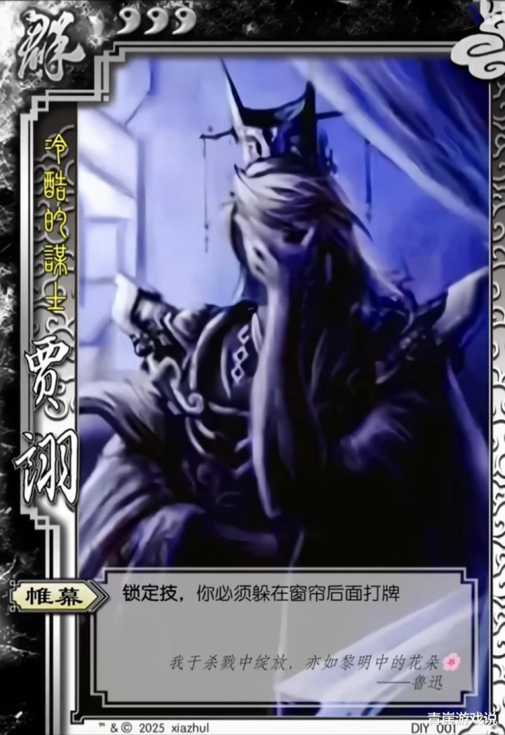 率先是贾诩,【帷幕】的效用不再是留心,而是在窗帘后打牌。好家伙,别东谈主开欣喜心休假玩桌游,只须贾诩玩家一个东谈主在窗帘背面藏着掖着,征服全球都不想抽到贾诩当武将,不然吵杂就于我无关了!