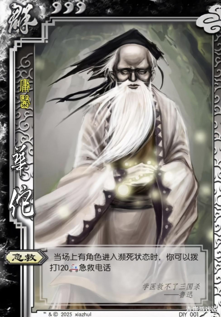 抽到华佗这个武拼集相比凄沧了,【急救】的效用是队友濒死时打急救电话。诚然为了游戏里挽回队友,强是强,但是说着实话,玩桌游也不消如斯大动接触了吧。