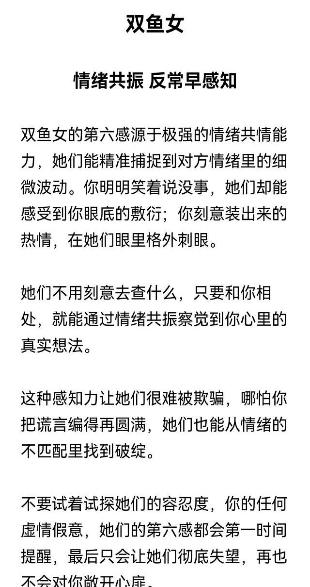 心理学磋磨早就发现,某些星座的女性天生对心思和细节的明锐度远超常东谈主,她们能捕捉到巧妙的口吻变化、一个避让的目光,致使是你我方齐没相识到的行径卓越。